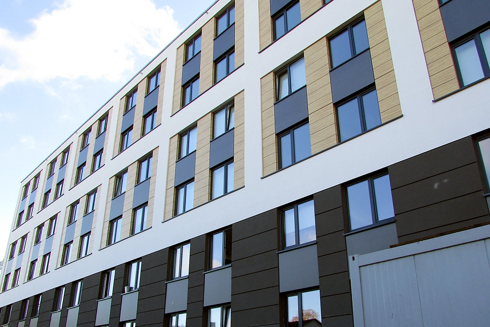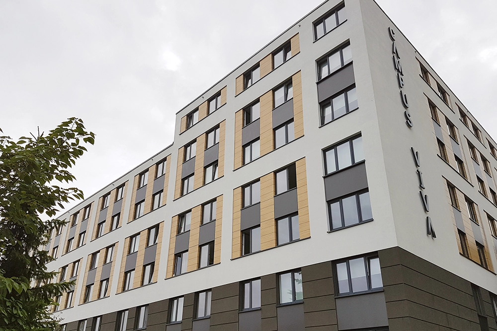 Die Mikro Apartments des Objekts CAMPUS VIVA in Berlin haben neben den RC3 Anforderungen im EG zusätzlich auf der Innenhofseite Prallscheiben zur Minderung des Außenlärmpegels einer Sportplatzanlage. Für die Prallscheibenkonstruktion wurde ein Sondervorschlag erarbeitet, der im Zuge der Baumaßnahmen mit einer Bauprüfung nachgewiesen wurde. Zusätzlich wurden im Rahmen des Auftrags die Belüftungsanlagen in den Fenstern, die Raffstore im EG und die Innenrollos mit erstellt.