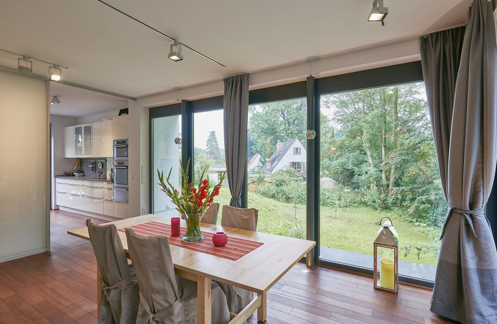 Das Licht ist an, die Musik läuft leise im Hintergrund und auf der Terrasse ganz langsam die Welt aus einer neuen Perspektive sehen. Drinnen und Draußen verbunden mit großen Schiebetüren und Fenstern. Sprechen Sie uns auf Ihr Projekt an!